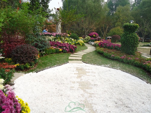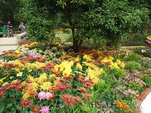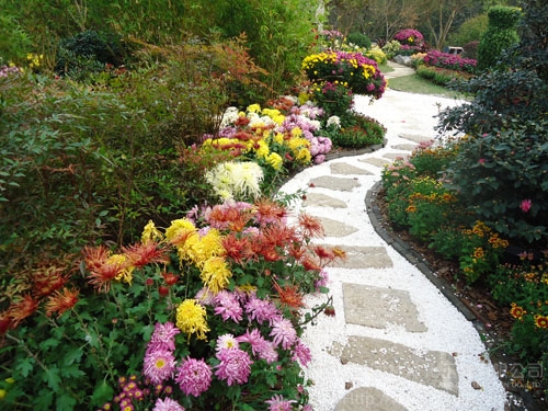 園路兩邊,菊花正艷