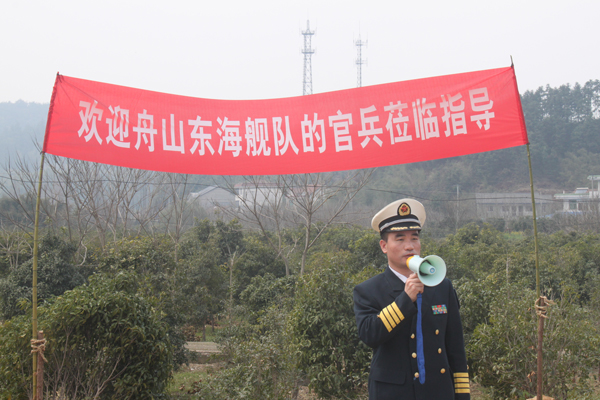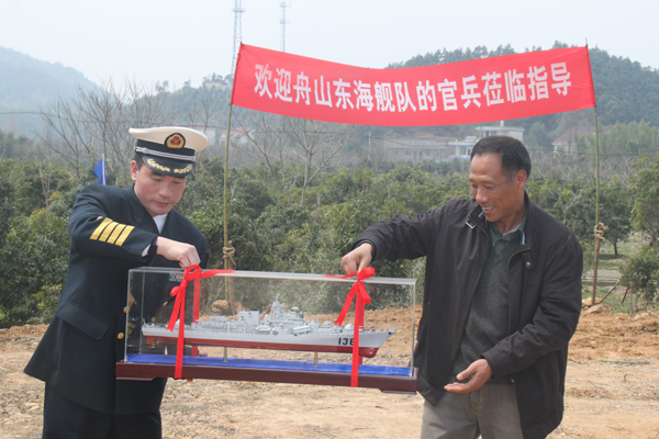 3月31日上午12點(diǎn),舟山東海艦隊(duì)某支隊(duì)官兵們的車輛到達(dá)泉口苗木基地,現(xiàn)場舉行了熱烈的歡迎儀式。儀式由杭州市園林綠化工程有限公司總經(jīng)理張炎良主持,杭州市林水局副局長楊文鐘代表杭州市政府對官兵們的到來表示了熱烈的歡迎,并發(fā)表了熱情洋溢的致辭;舟山東海艦隊(duì)某支隊(duì)呂政委代表官兵們致答謝辭,并贈送給楊副局長一個(gè)海軍軍艦?zāi)P?,表達(dá)他們對杭州市政府送樹行為的感謝。