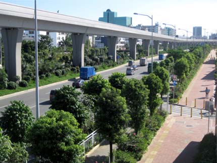 如今,開車行進(jìn)在這條道路上,干凈整潔的路面、開闊通透的視野、清新自然的景觀,給人帶來閑適、愜意的感覺?!耙匀藶楸荆鹬刈匀弧钡木G化理念,體現(xiàn)在景觀中的每個(gè)細(xì)節(jié);自然環(huán)境與城市環(huán)境的密切結(jié)合,使高架橋的道路通行功能與橋下中央綠化帶的生態(tài)功能有機(jī)融合。整條道路,不僅體顯出深圳這個(gè)濱海大都市獨(dú)有的景觀特色,更彰顯出這個(gè)城市的生機(jī)活力與熱情奔放。