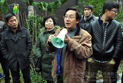 每到一個工程現(xiàn)場,工地負(fù)責(zé)人都先介紹工程的施工情況,然后,帶領(lǐng)大家進(jìn)行參觀,并隨時解答觀摩組一行提出的各種問題。每項工程觀摩結(jié)束的時候,三位專家都會集中點評,從苗木種植、植物搭配、水景營造、地形整理等各方面指出工程施工中存在的優(yōu)勢與不足,并提出需要改進(jìn)的地方。