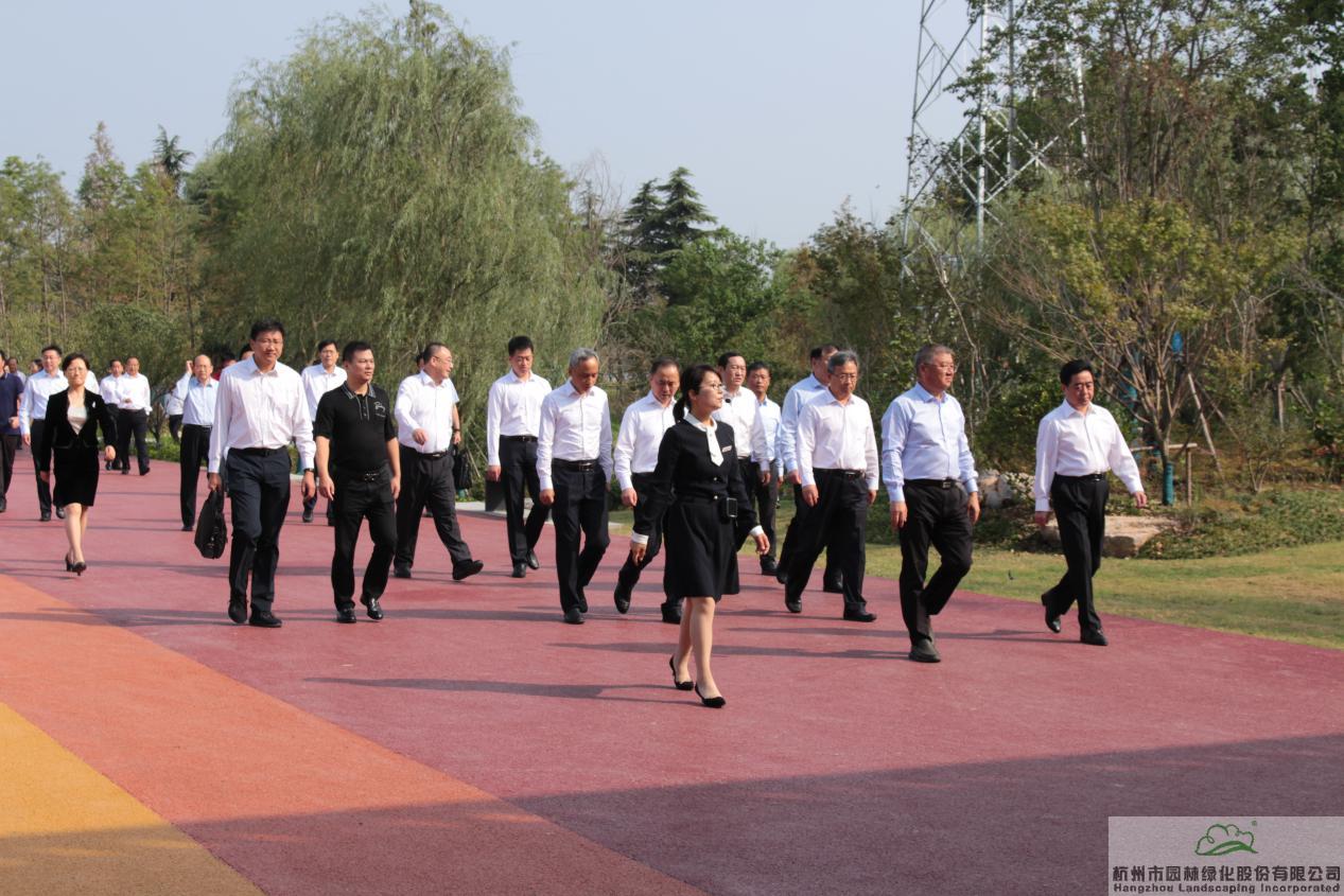 張炎良陪同宿遷市委書記、市人大常委會(huì)主任張愛(ài)軍,市委副書記、市長(zhǎng)王昊在運(yùn)河灣公園參觀