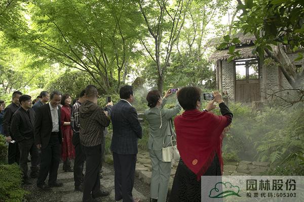 在李壽仁的帶領(lǐng)下,與會人員首先參觀了畫境·青山湖花園中心室外景觀展示區(qū)。五月的花園中心,綠意盎然,繁花綻放,鋪展開一幅生態(tài)自然、清新怡人的風(fēng)景畫卷,引來大家的不斷贊嘆,紛紛直呼“太美了!”“太漂亮了!”